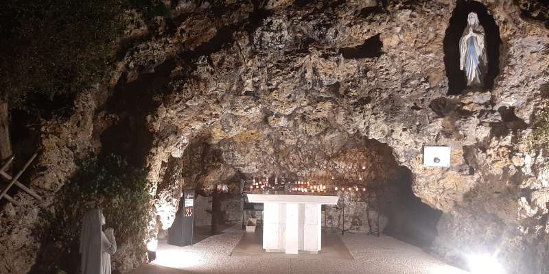 Je suis au bon endroit, l’espace Bernadette Soubirous. Une grande bâtisse blanche des mots sur le fronton “Deus caritas est”, autrement dit : Dieu est Charité. Chacun, sans distinction est accueillis au sanctuaire. Par des bénévoles, par des religieuses, par ceux qui œuvrent à transmettre un message d’amour ainsi que l’histoire des 13 années de dévouement de celle que l’on appelait ici sœur Marie-Bernard. Je dépose mon sac, mes épaules m’en sont reconnaissantes. C’est dans la chapelle que mes pas me guident ensuite pour me recueillir auprès du corps intact de Bernadette protégé dans sa châsse de verre.